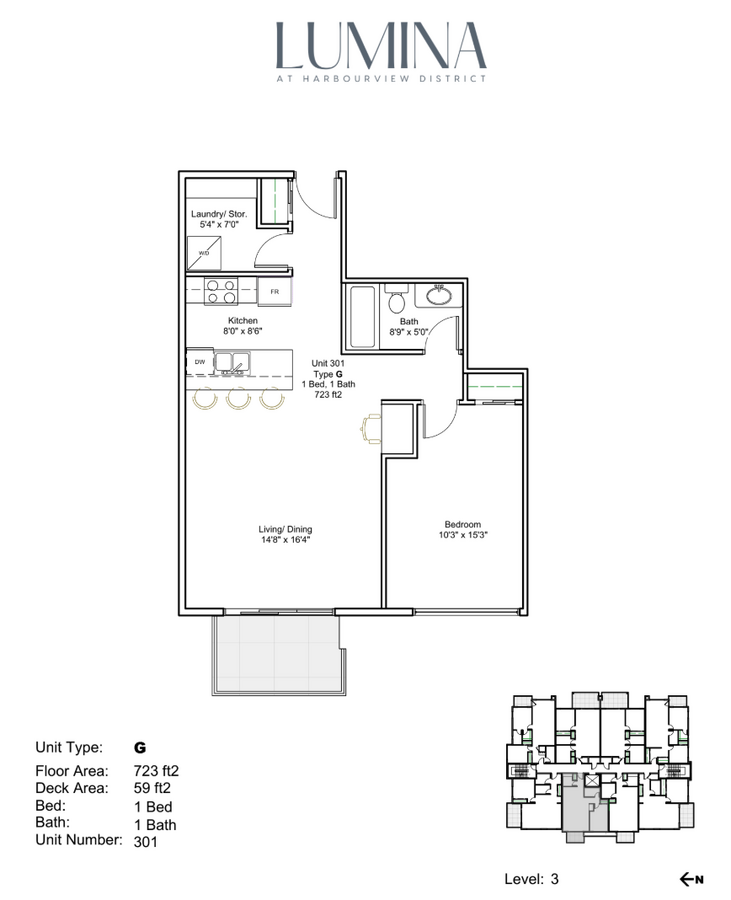 Welcome to Unit 301 at Lumina, a beautifully designed one-bedroom, one-bathroom home offering stunning city views and bright afternoon light with its western exposure. This thoughtfully planned residence is perfect for those who appreciate modern design, functionality, and an urban lifestyle.