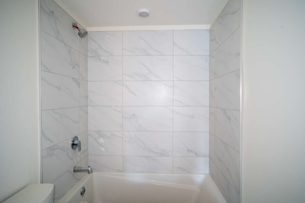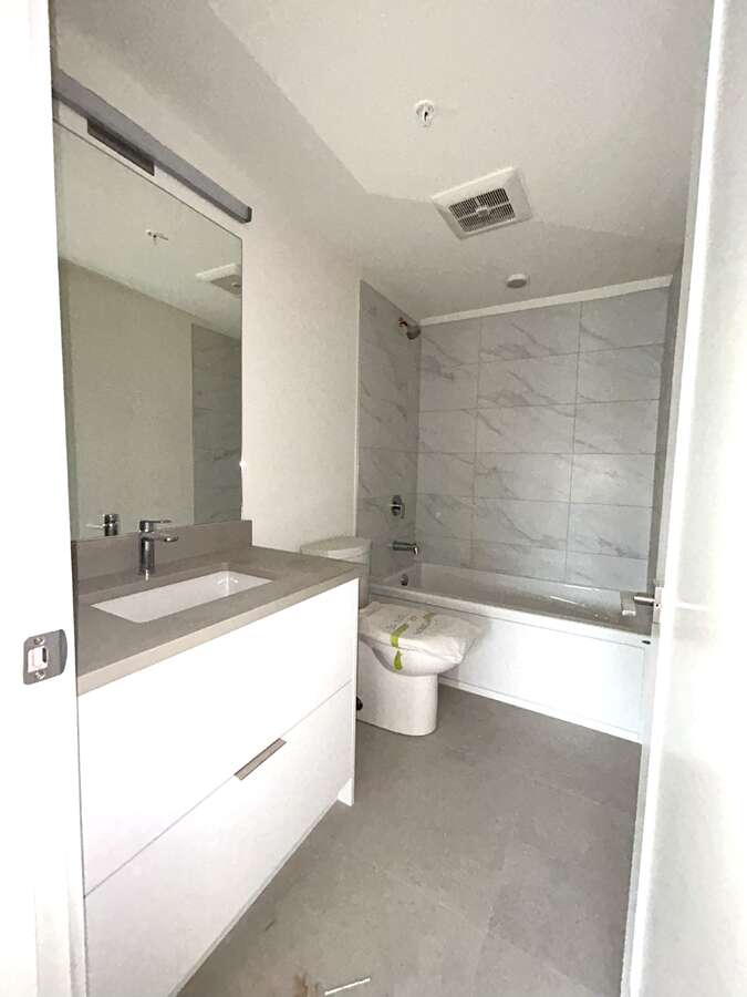 The spacious bedroom provides a peaceful retreat, while the well-appointed bathroom includes a tiled shower and tub combination with quartz finishes for a sleek, modern feel. Step outside onto your private deck, perfect for enjoying fresh air and views of the vibrant cityscape.