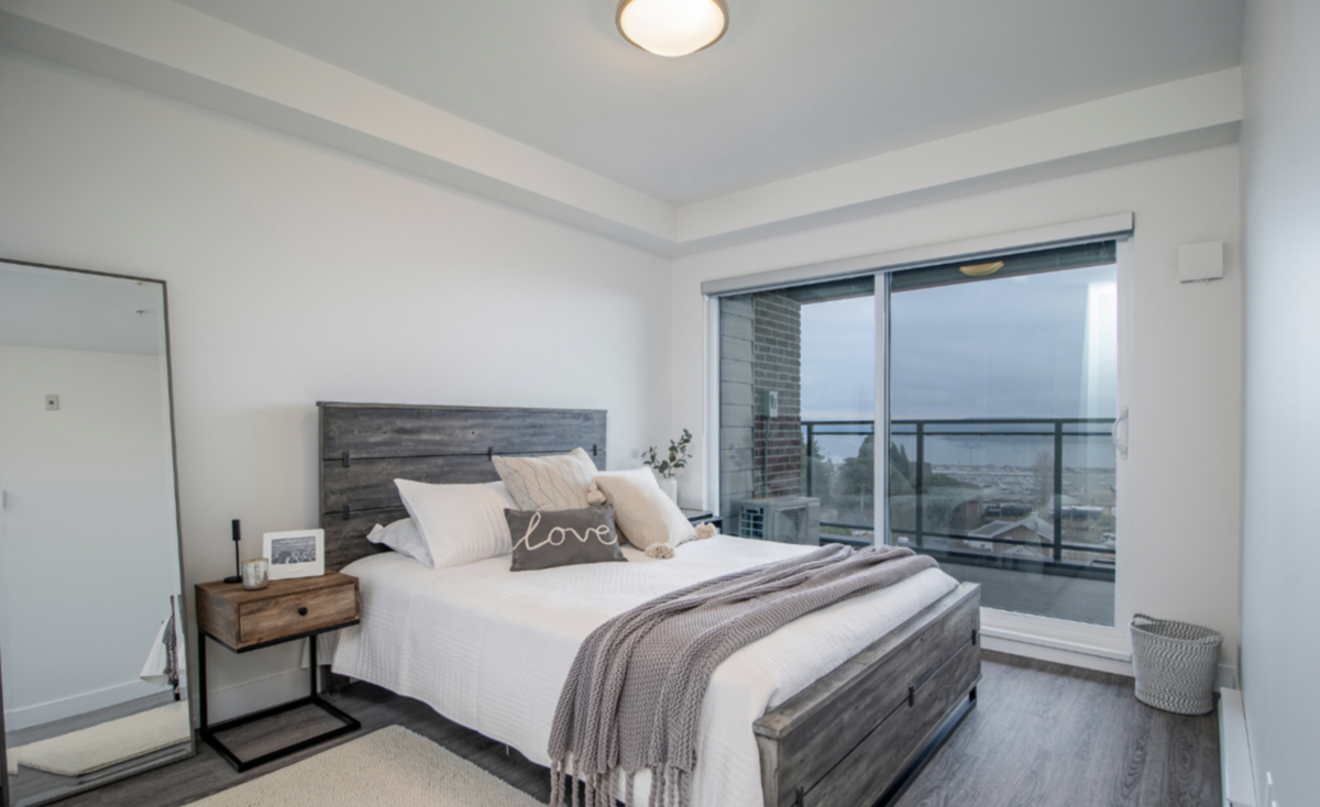 Discover Unit 610 at 'The Station,' where elegant living meets breathtaking ocean vistas. This 818 sq.ft. residence, perched on the top floor, offers stunning views of Newcastle Island and the expansive Salish Sea, framed by the distant coastal mountains. With two well-appointed bedrooms and two full bathrooms, this unit is a canvas for your lifestyle, capturing the essence of the coastal living experience.