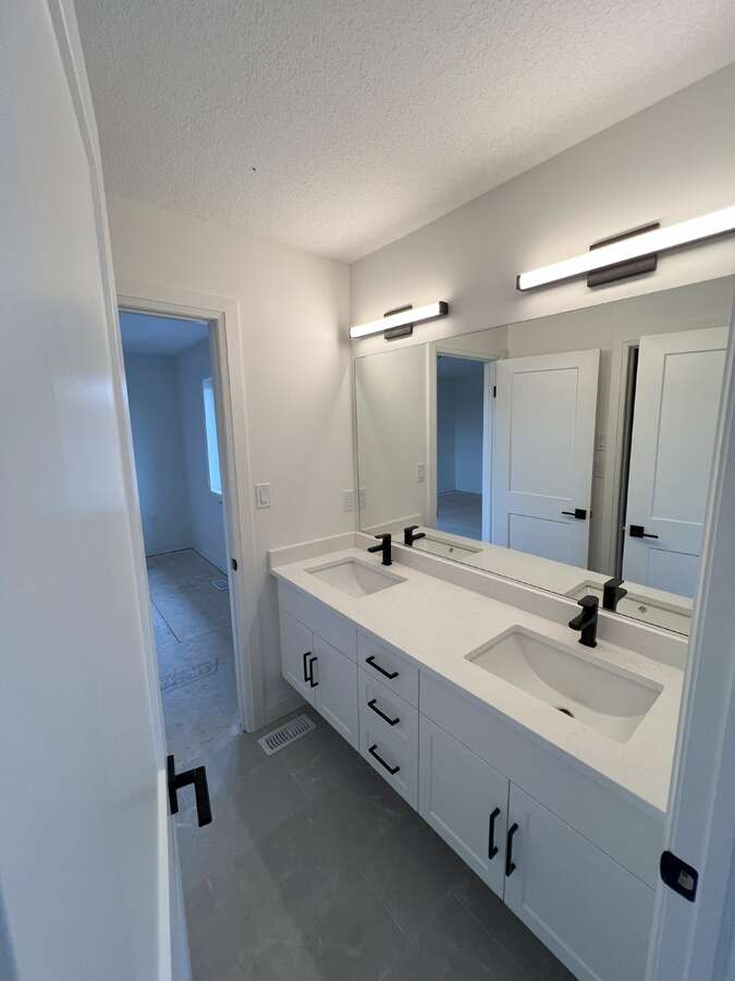 Retreat to the luxurious primary suite, featuring two closets and a spa-inspired ensuite with a free-standing soaker tub, glass shower, and dual vanities – your personal oasis of relaxation.