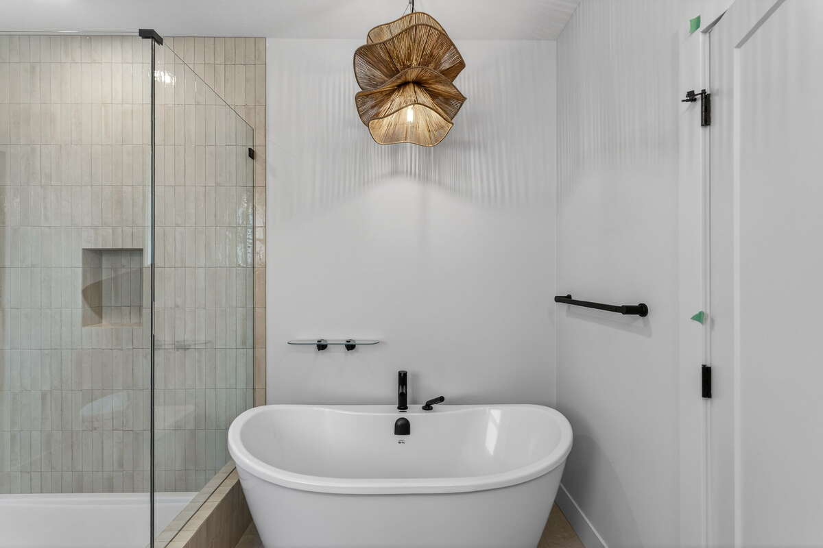 - Spa-inspired ensuite with freestanding tub + glass shower