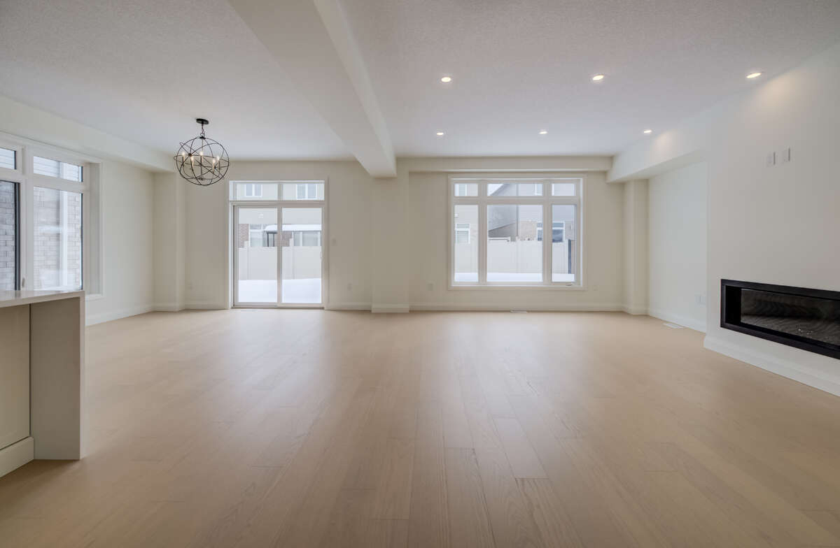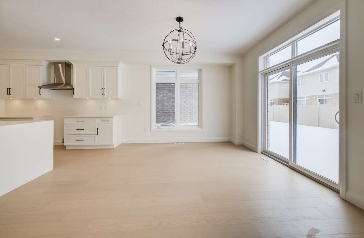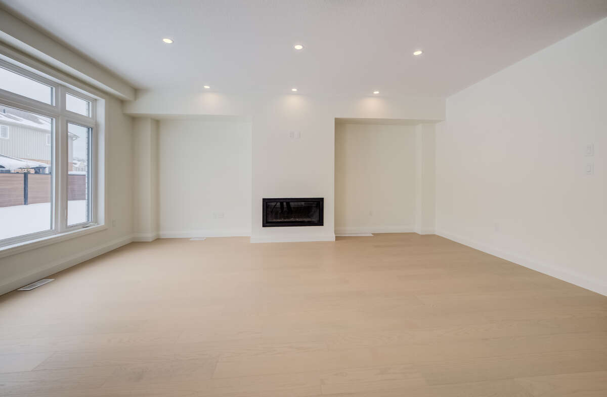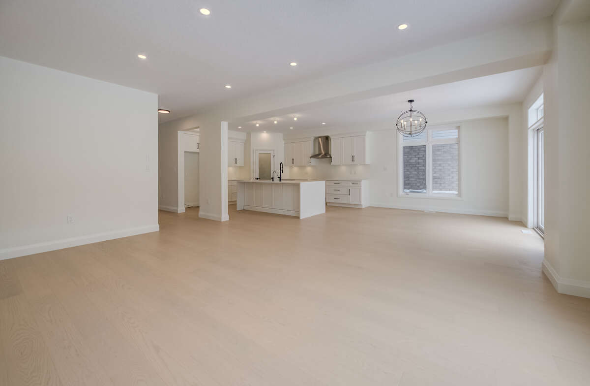 For more information on this property, please click the Brochure button. Located at 67 Crosswinds Drive in Kitchener, ON, this open-concept two-story home is 2646 finished square feet with an attached double garage and a paved driveway, withing walking distance of a neighborhood park. The main floor, with a 9-foot-high ceiling, consists of a great room, kitchen, dinette, welcoming foyer and a powder room. The great room includes a modern linear gas fireplace, pot lights and a large window with a view of the backyard. The kitchen, brightly lit by pot lights, contains upgraded white cabinetry with upper under-cabinet lighting, premium quartz countertops and a generous island that includes a breakfast bar. The dinette features a pendant light fixture and a sliding patio door with access to the rear yard. Hardwood flooring covers the main level, except for tile flooring in the powder room and entrance from the garage. An oak staircase to the second floor is brightened by a skylight in the landing area. The upper level includes four bedrooms, a main bathroom with two basins and a skylight, as well as a conveniently located laundry room. The master bedroom has a coffered ceiling, a generous walk-in closet and a luxurious ensuite with a free-standing soaker tub, tile shower with glass surround and door and a separate toilet room. Additional items included are air conditioning, five appliances, chimney-style rangehood and drawer microwave in the kitchen. This new home is move-in ready, except for second level flooring which the purchaser may select from the builder’s samples.