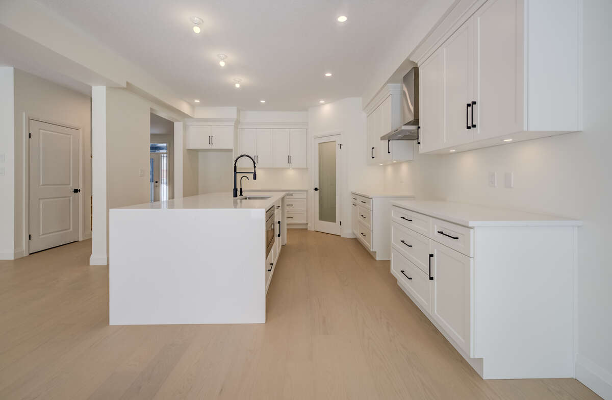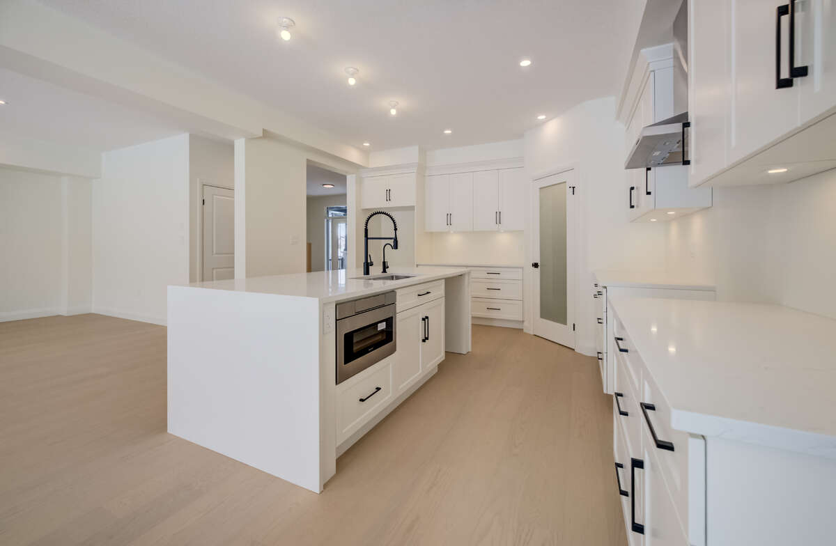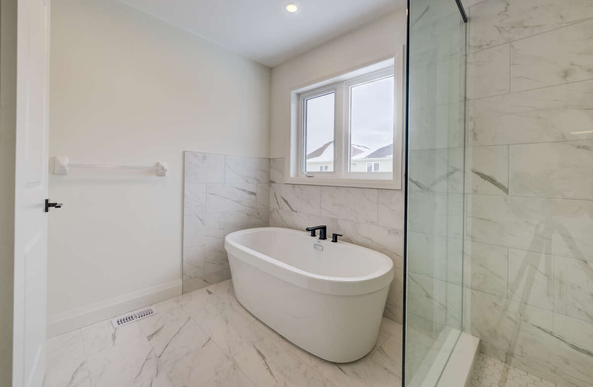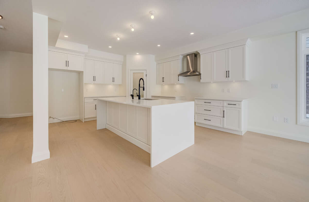 For more information on this property, please click the Brochure button. Located at 67 Crosswinds Drive in Kitchener, ON, this open-concept two-story home is 2646 finished square feet with an attached double garage and a paved driveway, withing walking distance of a neighborhood park. The main floor, with a 9-foot-high ceiling, consists of a great room, kitchen, dinette, welcoming foyer and a powder room. The great room includes a modern linear gas fireplace, pot lights and a large window with a view of the backyard. The kitchen, brightly lit by pot lights, contains upgraded white cabinetry with upper under-cabinet lighting, premium quartz countertops and a generous island that includes a breakfast bar. The dinette features a pendant light fixture and a sliding patio door with access to the rear yard. Hardwood flooring covers the main level, except for tile flooring in the powder room and entrance from the garage. An oak staircase to the second floor is brightened by a skylight in the landing area. The upper level includes four bedrooms, a main bathroom with two basins and a skylight, as well as a conveniently located laundry room. The master bedroom has a coffered ceiling, a generous walk-in closet and a luxurious ensuite with a free-standing soaker tub, tile shower with glass surround and door and a separate toilet room. Additional items included are air conditioning, five appliances, chimney-style rangehood and drawer microwave in the kitchen. This new home is move-in ready, except for second level flooring which the purchaser may select from the builder’s samples.