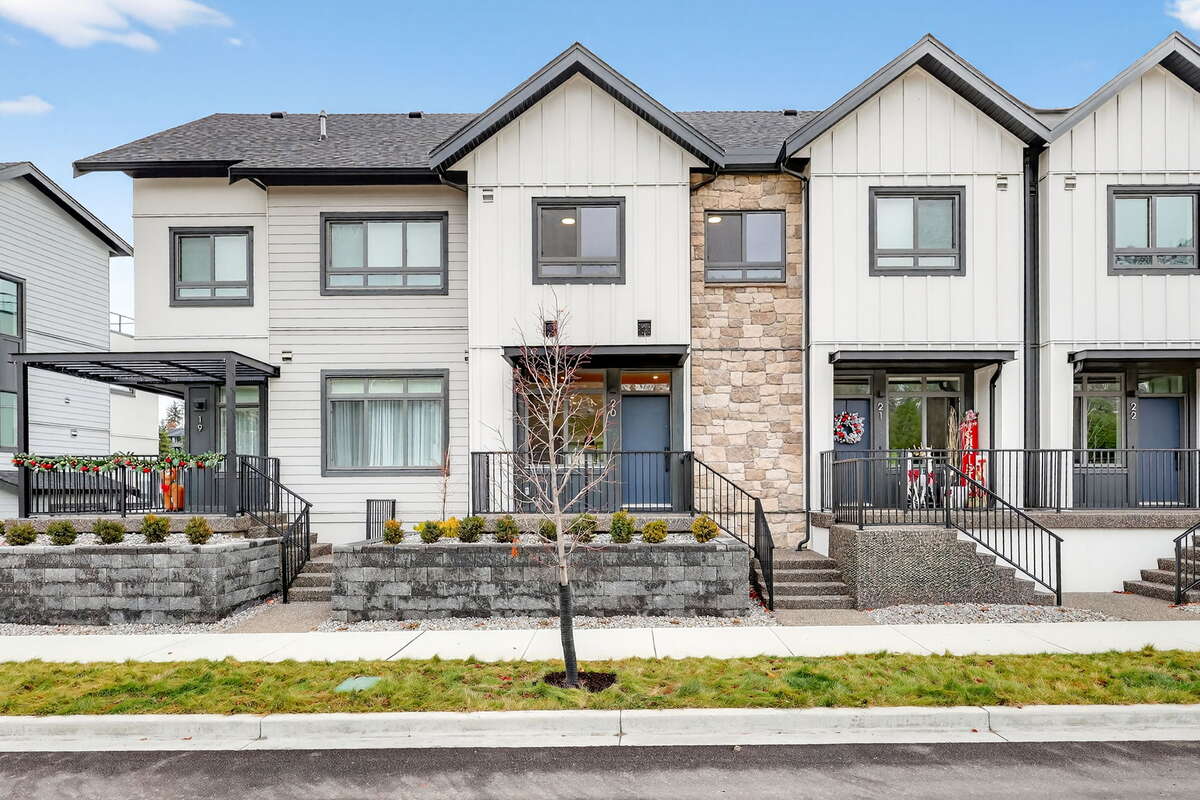 NO Strata for One Year! Experience refined lakeside living in this Interior Juniper townhouse at Pondside Landing, offering 1,535 sq. ft. of contemporary comfort in the Warm Nordic colour scheme. This thoughtfully designed 3-bedroom, 3-bathroom home features a bright open-concept layout and a private rooftop patio ideal for relaxing or entertaining.